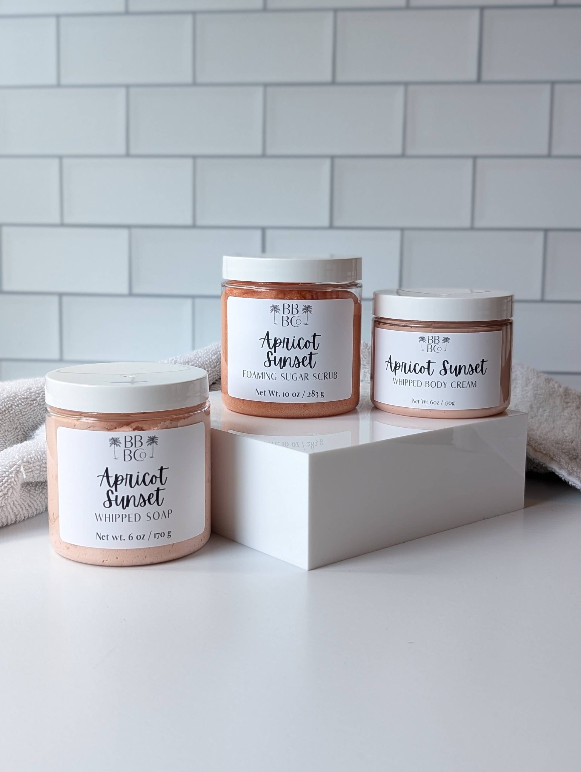 Indulge in the enchanting scent of Apricot Sunset with our luxurious foaming sugar scrub. This beautiful blend combines the sweetness of fresh apricots with delicate lavender, soft floral notes, and a warm base of sandalwood and white musk. It’s a complex, elegant fragrance that’s perfect for any occasion.